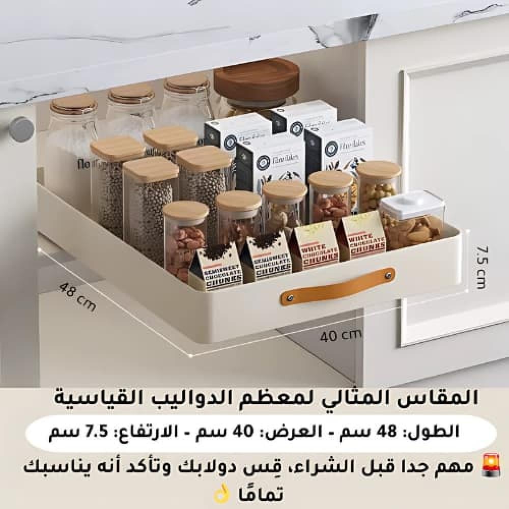 مع منظم الأدراج القابل للسحب، كل هالمعاناة اليومية بتنتهي. ما عاد في داعي للانحناء ولا للفوضى. كل شيء قدامك وأنتِ واقفة مرتاحة. بتوفري وقتك، وبتعيشي راحة حقيقية في مطبخك كل يوم."