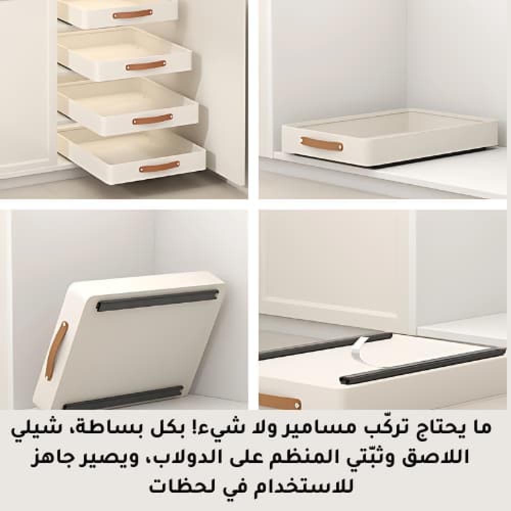 "تنبيه مهم: تأكد إن مساحة دولابك تناسب المقاس: العرض 40 سم، الطول 48 سم، الارتفاع 7.5 سم.